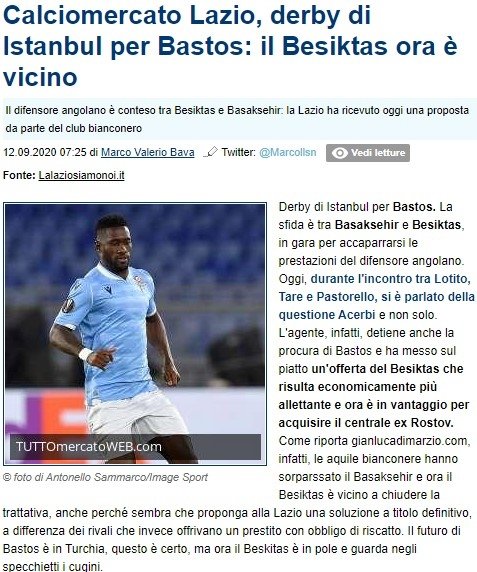 Aktarılan bilgilere nazaran Beşiktaş, Bastos için Lazio’ya satın alma opsiyonlu kiralama teklifi sundu ve Başakşehir’i bu transferde saf dışı bıraktı.