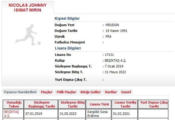 Beşiktaş’ta orta transfer devrinin son günü bir ayrılık daha resmen açıklandı. Siyah-beyazlı kulüp, dönem başında takım dışı bırakılan Fransız stoper Nicolas Isimat-Mirin’le yollarını ayırdı.