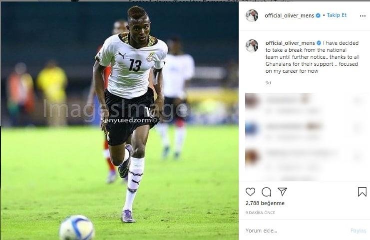 Ganalı futbolcu bu kararını toplumsal medya hesabından yaptığı paylaşımla duyurdu.