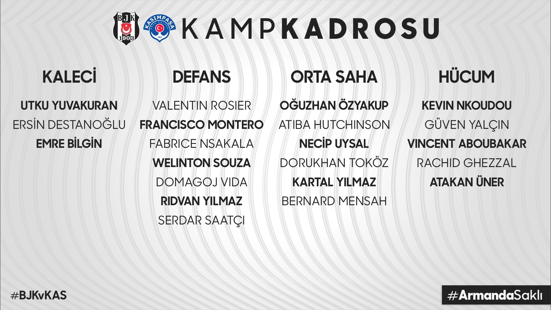 Müsabaka öncesi Beşiktaş, Kasımpaşa maçı kamp takımını da resmi toplumsal medya hesabından yaptığı paylaşımla duyurdu.