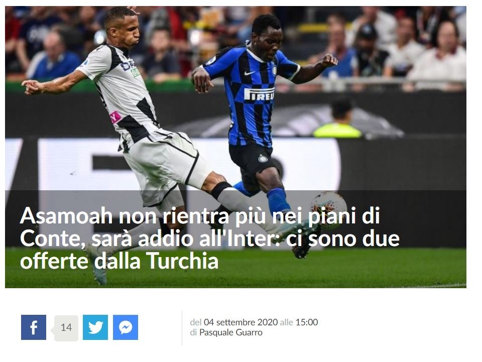 İtalyan basınından Calcio Mercato, Ganalı sol bekin teknik yönetici Antonio Conte’nin planları ortasında yer almadığını duyurdu. Oyuncunun menajeri ile birlikte kulüp arayışında olduğunu yazdı. Haberde Galatasaray ve Fenerbahçe’nin de tecrübeli yıldıza daha evvel duyduğu ilgiye değinildi.