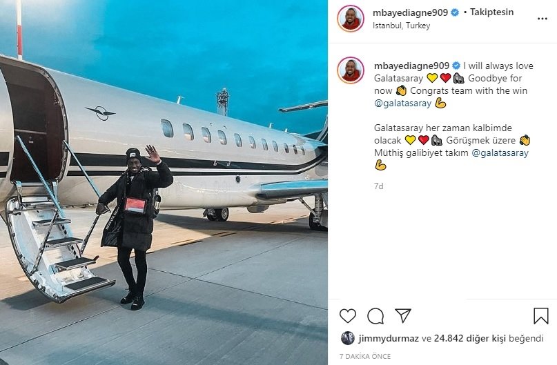 Galatasaray’ın Senegalli forveti Diagne toplumsal medya hesabından yaptığı paylaşımla Galatasaray taraftarına veda etti.