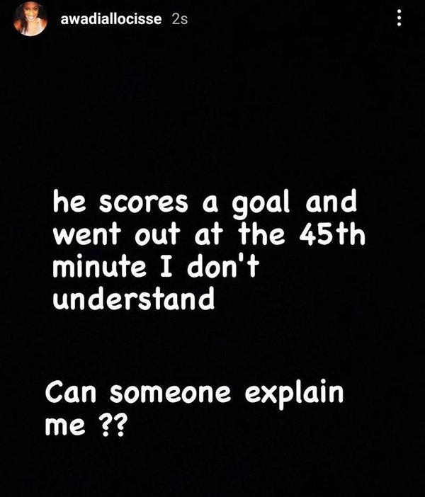 Toplumsal medyadan paylaşım yapan Diallo Cisse, “İlk yarı 1 gol attı ve oyundan çıktı. Birisi bana bunu açıklayabilir mi?” tabirlerini kullandı.