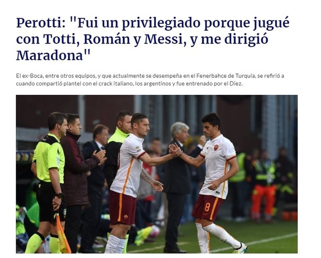 Perotti konuşmasında, futbol mesleği boyunca büyük yıldızlarla oynadığını ve bu sebeple kendini ayrıcalıklı hissettiğini tabir ederken, “Totti ile bir buçuk yıl oynadım, mesleğinin son yıllarıydı. Riquelme ile oynadım. Kendimi ayrıcalıklı hissediyorum.” dedi.