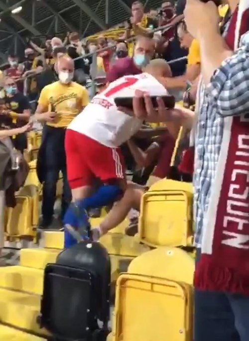 Ortaya giren güvenlik vazifelisi ve başka taraftarlar, Leistner’i bölgeden uzaklaştırarak hengameyi daha da büyümeden önledi.