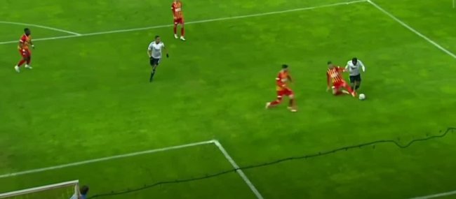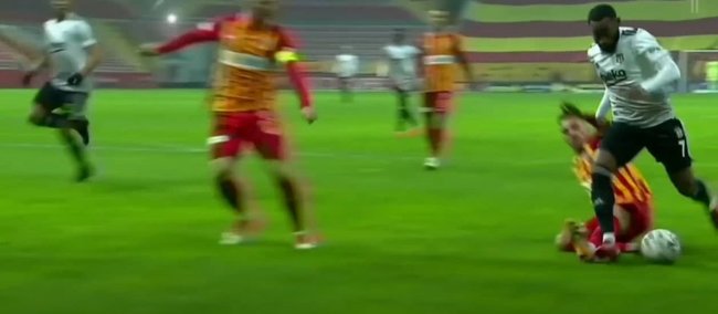 Siyah beyazlılarda Nkoudou, ceza alanı içerisinde kat ederken, Kayserisporlu futbolcunun müdahalesi ile karşı karşıya kaldı.