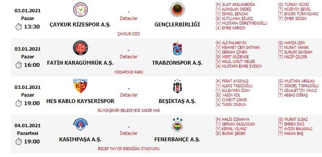 Üstün Lig’in 16. haftasında oynanacak olan Kayserispor Beşiktaş müsabakasının VAR hakemi Cüneyt Çakır oldu. İşte haftanın oynanmayan maçlarının hakemleri;