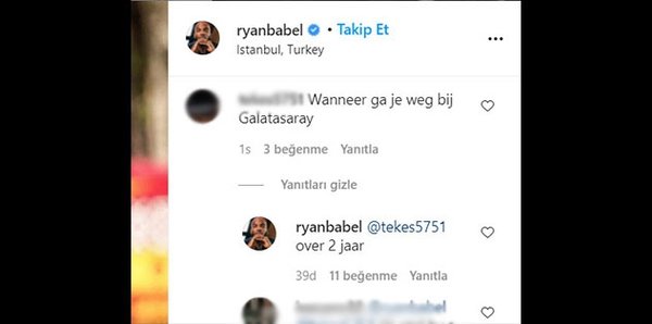 Kadrodan gönderileceği konuşulan 33 yaşındaki futbolcudan flaş bir atılım geldi. Ryan Babel, toplumsal medya hesabında paylaştığı fotoğrafın altına gelen, ‘Galatasaray’dan ne vakit ayrılıyorsun?’ sorusuna ‘2 yıl sonra’ karşılığını verdi.