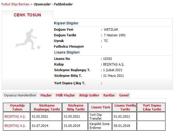 Beşiktaş, İngiltere Premier Lig takımı Everton’dan kiraladığı Cenk Tosun’ın lisansını çıkardı.