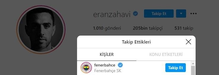 Fenerbahçe’nin transfer listesinde yer alan İsrailli golcü Eran Zahavi, Fenerbahçe’nin Instagram hesabını takibe aldı. Eran Zahavi birebir vakitte Galatasaray’ın yıldızı Radamel Falcao’yu da takip ediyor.