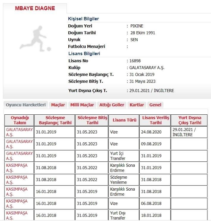 Galatasaray, Senegalli golcüsü Mbaye Diagne’nin transfer olduğunu Türkiye Futbol Federasyonu’na (TFF) bildirdi.