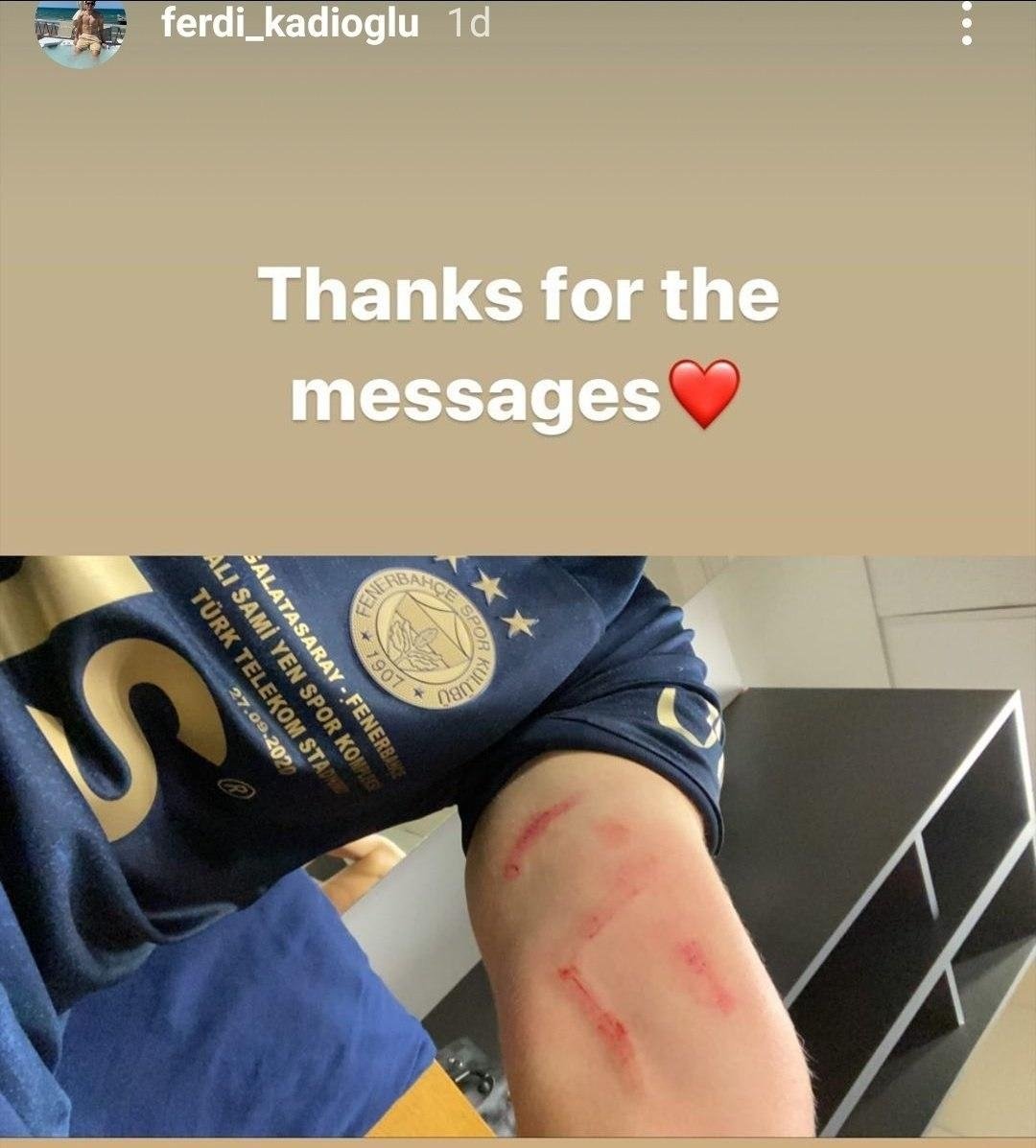 Müsabakaya 78. dakikada Deniz Türüç’ün yerine oyuna dahil olan Fedi Kadıoğlu maç sonu paylaşımı damga vurdu. Genç futbolcu maç esnasında Luyindama’nın kendisine yaptığı hareketin sonucunda kolunda oluşan yaranın fotoğrafını maçın akabinde toplumsal medya hesabından paylaştı.