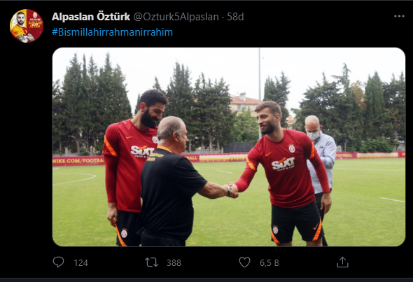 Galatasaray’ın Göztepe’den bedelsiz olarak transfer ettiği Alpaslan Öztürk, yeni teknik yöneticisi Fatih Terim ile tanıştı. Öztürk bu anı toplumsal medya hesabından paylaşırken, altına “Bismillahirrahmanirrahim” yazdı.