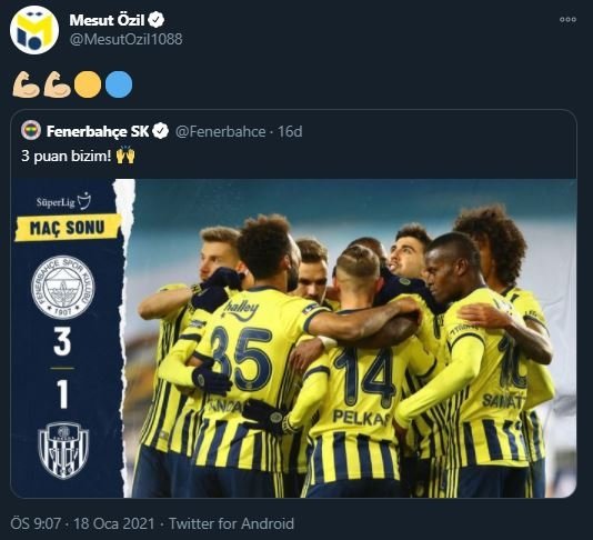 3. Son dakika: Mesut Özil’den Fenerbahçe – Ankaragücü maçı sonrası galibiyet paylaşımı