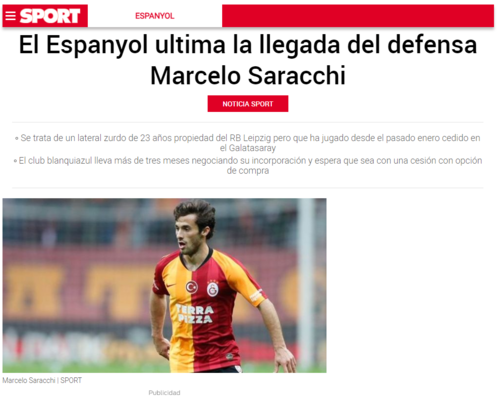 İspanyol basınında çıkan haberlere nazaran Leipzig’de formasını Angelino’ya kaptıran Saracchi’nin tekrar kiralanacağı ve oyuncunun Espanyol ile her hususta anlaştığı belirtiliyor. Bu dönem yine La Liga’ya yükselen Espanyol’un birinci transferi olması beklenen Saracchi’nin İspanyol grubuyla en az 3 aydır görüştüğü SPORT gazetesi tarafından yazıldı.