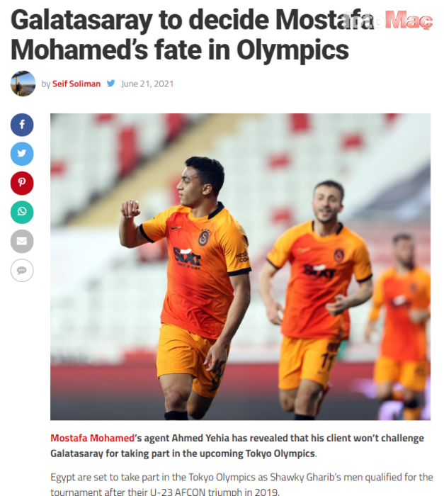 Galatasaray’ın Mısırlı yıldız oyuncusu Motafa Mohamed’in menajeri Ahmed Yahya, 23 yaşındaki oyuncusunun Tokyo Olimpiyatları’nda oynayıp oynamayacağına dair açıklamalarda bulundu.