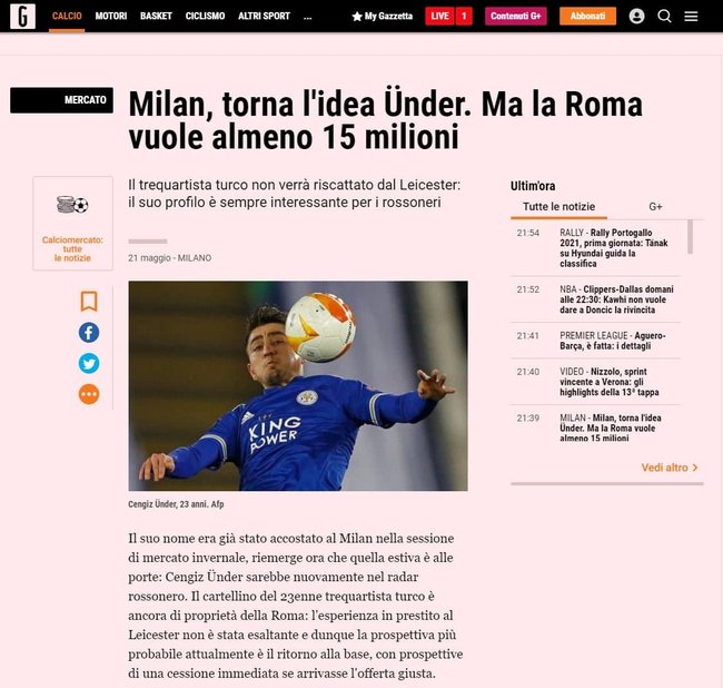 Cengiz Ünder transfer piyasasında isminden kelam ettirmeye devam ediyor. Roma ile 2023 yılına kadar mukavelesi bulunan ulusal oyuncunun, buradan ayrılması bekleniyor. İtalya’nın önde gelen gazetelerinden La Gazzetta dello Sport’ta yer alan habere nazaran 23 yaşındaki oyuncu ile Milan ilgileniyor.