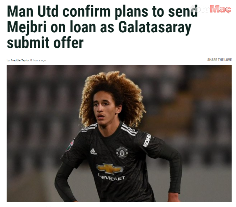 Ada basınında yer alan haberde, İngiltere Premier Lig gruplarından Manchester United’ın genç futbolcunun kiralık olarak Galatasaray’a transferine onay verdiği yazıldı.
