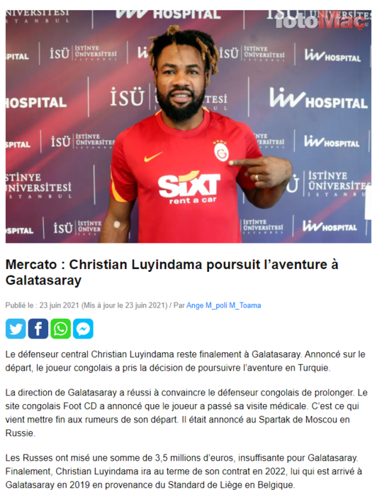 Luyindama’ya Rusya’dan Spartak Moskova’nın talip olduğu ileri sürülmüştü. Fatih Terim’in Luyindama konusunda şimdi kesin kararını vermediği ve kamp sürecinde oyuncuyu yakından takip edeceği argüman edilmişti.