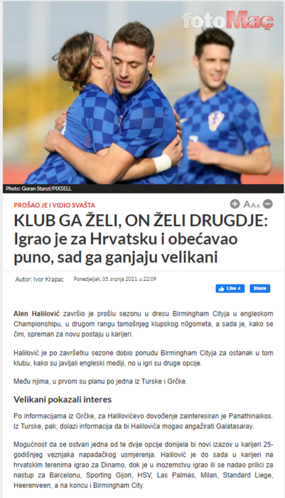 “Alen Haliloviç’e Yunanistan ve Türkiye’den teklif var” başlıklı habere nazaran Galatasaray 25 yaşındaki orta saha oyuncusu için birinci teklifini sunarken, Yunan takımlarından Panathinaikos da oyuncuya teklif yapan bir diğer kulüp.