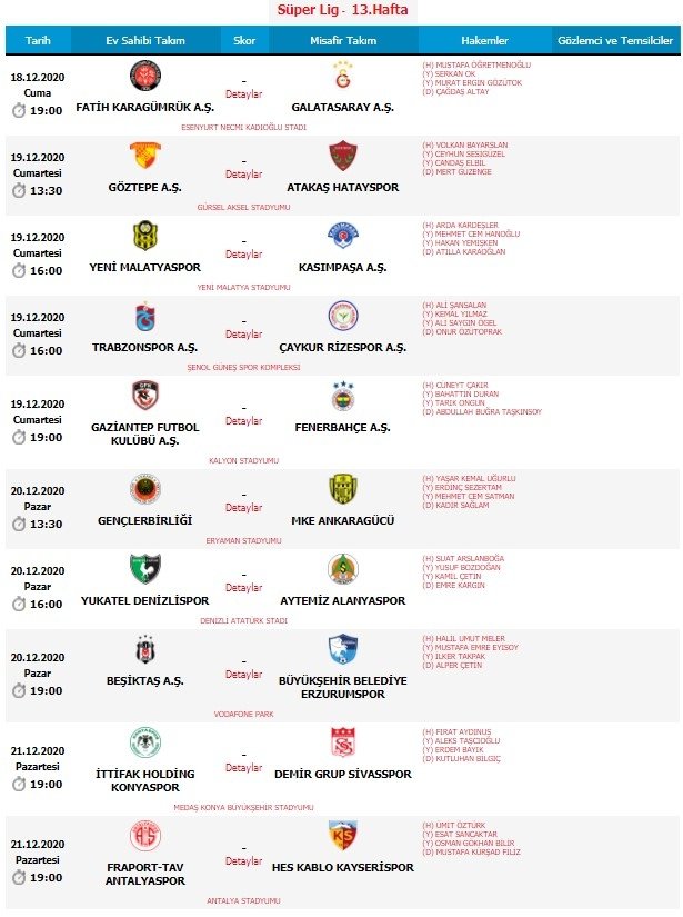 Üstün Lig’in 13. haftasında oynanacak müsabakaları yönetecek hakemler belirli oldu. Türkiye Futbol Federasyonu Merkez Hakem Konseyi, 13. hafta maçlarında vazife alacak hakemleri açıkladı.