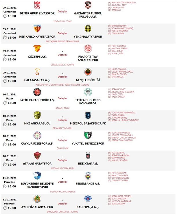 Üstün Lig’de 18. haftanın hakemleri açıklandı. Galatasaray Gençlerbirliği müsabakasını Halis Özkahya, Hatayspor Beşiktaş maçını Ali Palabıyık, BB Erzurumspor Fenerbahçe müsabakasını Mete Kalkavan yönetecek. İşte haftanın öteki maçlarının hakemleri;