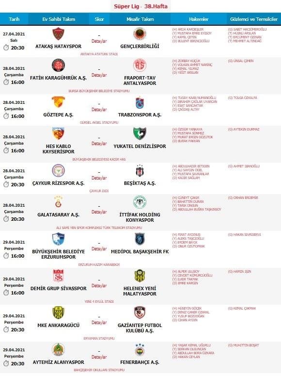 Spor Toto Muhteşem Lig’in 38. haftasını yönetecek hakemler açıklandı.