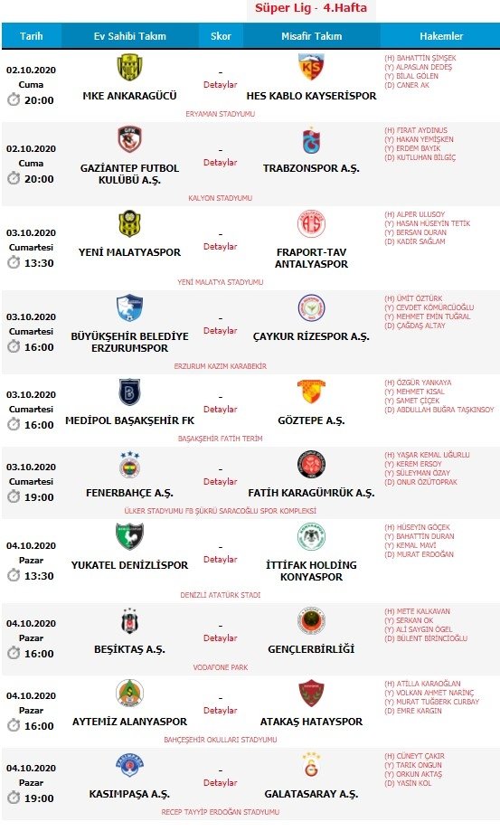 Ligin 4’üncü haftasında vazife alacak hakemler şöyle: