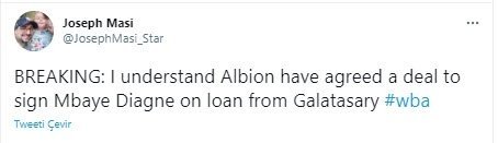 West Bromwich Albion’ın bulunduğu West Midlands bölgesinde yayın yapan Express&Star gazetesinin haberine nazaran; Galatasaray, West Bromwich Albion’dan gelen kiralama teklifini kabul etti. Sky Sports’un haberine nazaran de mutabakat tamamlandı. West Bromwich Albion, Mbaye Diagne’yi mümkün olan en kısa müddette İngiltere’ye getirmek için harekete geçtiği de belirtildi.
